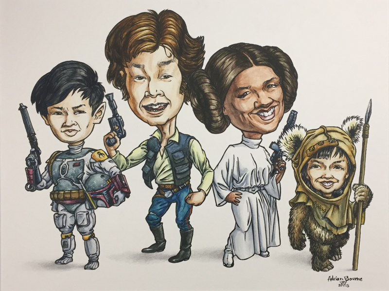 The Andrew’s had a circus themed wedding, including caricature art for all the guests. Marker on card stock.