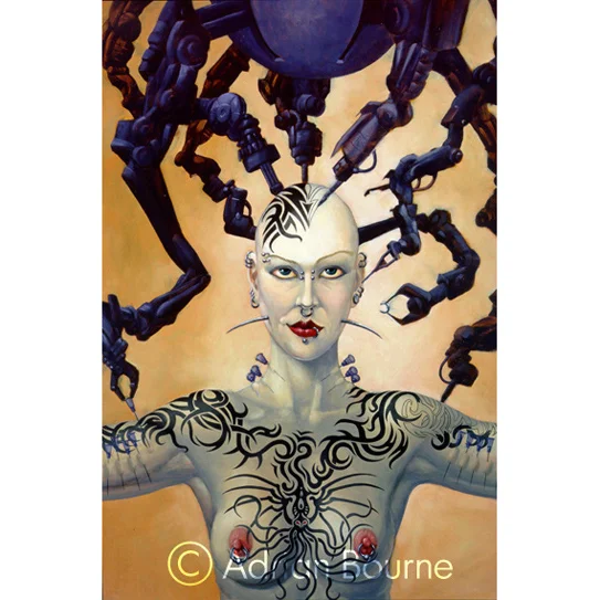 "Fetish Machine" ©1997 Alkyd oils on illustration board 19.5"x29.5" (NSFW view).
