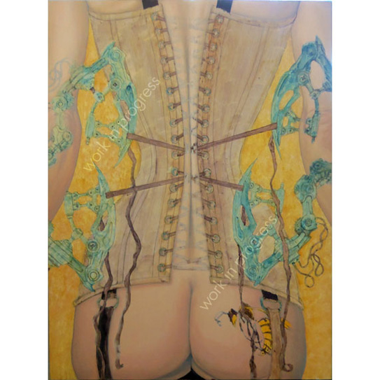 "Wasp-Waisted" Alkyd on Masonite. Work in Progress.